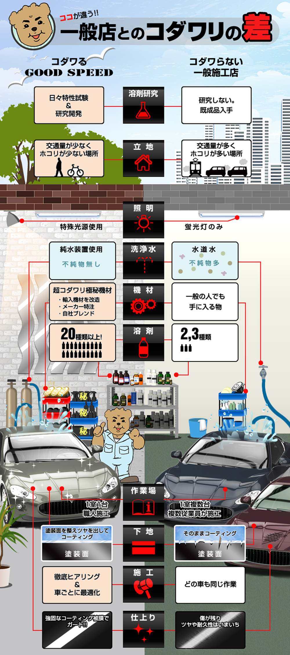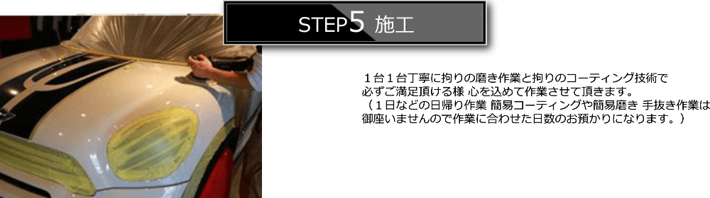 最高級のボディーコーティングを実現するためにはコーティング作業だけへの“こだわり”ではなく、 全ての作業に対する“こだわり”が大切なのです。