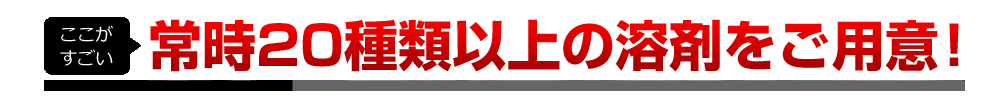 通常の施工店や中古自動車販売店などで使用・販売されている溶剤は、汎用性の高い3~4種類の溶剤が揃う程度。