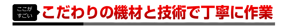 施工個所に適した機材を数多く揃え、こだわりの機材と技術で丁寧に作業をおこないます。