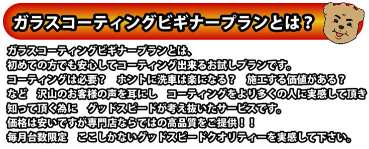 ビギナーズコーティングパックのご案内 低価格ガラスコーティングビギナープランを動画でわかりやすくご説明します 施工するなら もっと上のグレードが良い! お得なコーティングプランは??って お客様はこちら